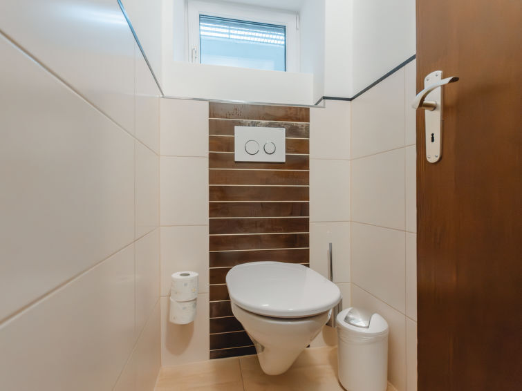 Maison 8 pièces 180 m2 sur 2 niveaux. Aménagement confortable et plaisant: entrée. Séjour avec TV (satellite) (écran plat). Sortie sur le balcon. Salle à manger avec coin repas. 2 chambres, chaque chambre avec: 1 lit. 1 chambre double. Cuisine (four, lave-vaisselle, 4 plaques vitrocéramiques, micro-ondes, congélateur, cafetière électrique). Douche, WC séparé. À l'étage inférieur: entrée. 2 chambres doubles. 1 chambre avec 1 lit. 1 chambre avec 1 x 2 lits superposés, 1 lit double. Douche, WC séparé. Balcon 30 m2, terrasse 12 m2, jardinet. Meubles de terrasse, mobilier de balcon. Belle vue sur les montagnes et la vallée. A disposition: lave-linge (en sus). Internet (Connexion WIFI, gratuit). Place de parking près de la maison. Veuillez noter: adapté(e) aux familles. Maison non-fumeur. Maximum 3 animaux/ chiens autorisés. Détecteur de fumée. 50602-000274-2020