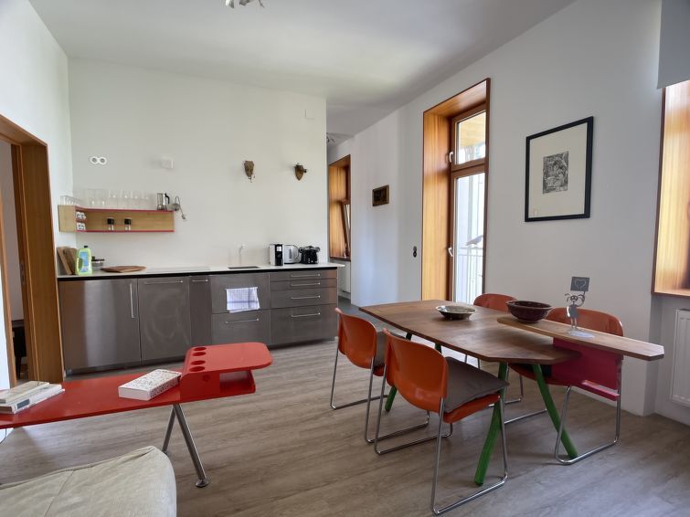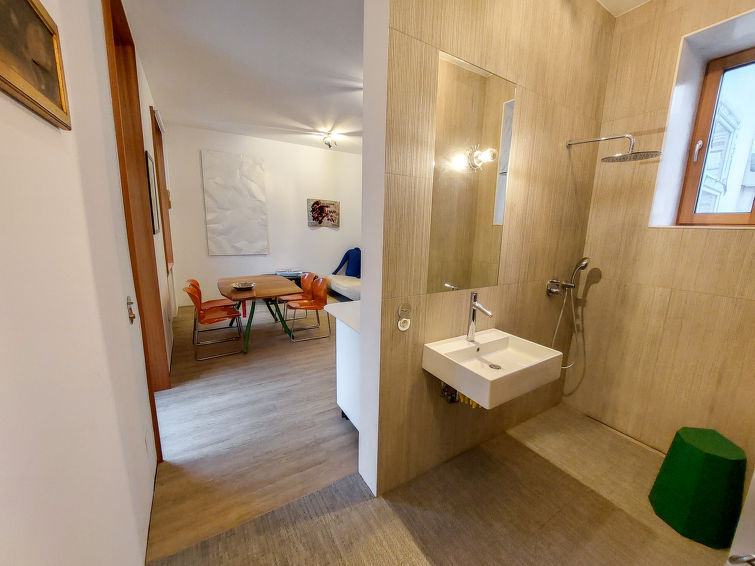 "Happy Pasetti", apt 2 pièces 45 m2 au 4ème étage. Logement idéal pour 4 adultes. Clair, aménagement très moderne et de bon goût: entrée avec lavabo, WC séparés et douche. Séjour/salle à manger avec 1 lit gigogne (2 pers.). Sortie sur le balcon. Séjour/chambre à coucher avec 1 lit double. Cuisine ouverte (4 plaques de cuisson, lave-vaisselle, grille-pain, bouilloire électrique, cafetière électrique). Sol en bois. Balcon. Mobilier de balcon. A disposition: lave-linge, fer à repasser, sèche-cheveux. Internet (Connexion WIFI, gratuit). Veuillez noter: logement côté cour. Logement non-fumeur.