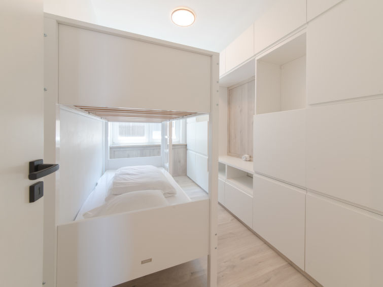 "Spirou met parking", appartement 3-kamers 70 m2 op de 2e verdieping. Volledig gerenoveerd in 2022, modern en stijlvol ingericht: open woonkamer met TV, Digitale TV, internationale TV-zenders en gasverwarming. 1 2-pers. kamer met 1 2-pers bed (180 cm, lengte 200 cm). 1 kamer met 1 x 2 stapelbedden (90 cm, lengte 200 cm). Open keuken (afwasmachine, 4 keramische glas kookplaten, broodrooster, waterkoker, elektrische koffiemachine, combimagnetron) met bar. Douche, aparte WC. Klein balkon 6 m2, op het zuidwesten gelegen. Balkonmeubilair. Panoramazicht op zee. Ter beschikking: Internet (WiFi, gratis). Parkeerplaats nr. P002 (overdekt, 1 Auto). Rookvrij huis. Rookmelders, brandblusser.