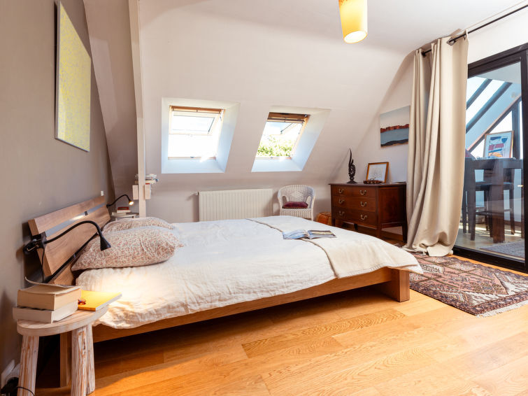 Huis 8-kamers 240 m2 op 2 verdiepingen. Comfortabel en smaakvol ingericht: groot woon-/eetkamer met open haard (alleen decoratie), TV (Flatscreen TV). Uitgang naar het terras. Kleine salon. Uitgang naar het terras. Open keuken (oven, afwasmachine, 3 inductiekookplaten, broodrooster, waterkoker, magnetron, diepvriezer, elektrische koffiemachine). Uitgang naar het terras. Douche, aparte WC. Bovenverdieping: 1 groot kamer met Kleedkamer met 1 2-pers bed (1 x 160 cm, lengte 200 cm). 1 kamer met 1 bed (90 cm, lengte 190 cm), 1 2-pers bed (1 x 140 cm, lengte 190 cm). 1 kamer met 1 2-pers bed (1 x 140 cm, lengte 190 cm). 1 groot kamer met 2 bedden (90 cm, lengte 190 cm), 2 2-pers bedden (1 x 140 cm, lengte 190 cm). (wenteltrap), 1 kamer met afgeschuinde daken met 1 2-pers bed (1 x 140 cm, lengte 190 cm). Badkamer, aparte WC. Groot terras, op het zuiden gelegen. Terrasmeubelen, barbecue, ligstoelen. Zeer mooi uitzicht op zee. Ter beschikking: wasmachine, strijkijzer, kinderbed, haardroger. Internet (Internet (WiFi), gratis). Garage op het terrein. Rookvrij huis. Rookmelders. Aanbod door een particulier volgens art. 155, IV van CGI.