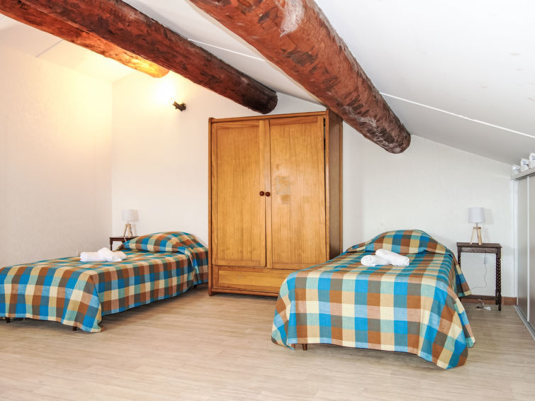 Appartement 3-kamers 77 m2 op de 2e verdieping. Comfortabel en mooi ingericht: woon-/eetkamer met TV (Flatscreen TV). Uitgang naar het terras. 1 kamer met 1 bed (100 cm, lengte 190 cm), 1 slaapplaats (80 cm, lengte 190 cm). Keuken (mini-oven, afwasmachine, 4 keramische glas kookplaten, broodrooster, magnetron, diepvriezer, elektrische koffiemachine). Uitgang naar het balkon. Douche, aparte WC. Elektrische verwarming. Bovenverdieping: (steile trap) groot galerij met afgeschuinde daken, hoogte van het plafond 85 - 190 cm met 3 bedden (80 cm, lengte 190 cm). Terras 8 m2. Terrasmeubelen. Ter beschikking: wasmachine. Internet (Internet (WiFi), extra). Parkeerplaats bij het huis. 1 klein huisdier/hond toegestaan. TV alleen FR. Rookmelders. Aanbod door een particulier volgens art. 155, IV van CGI. 83112001641ON