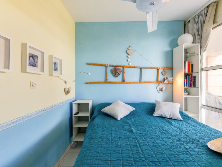 "Le Belvédère (V2 009)", appartement 3-kamers 43 m2, op de begane grond. Woonkamer met 2 slaapplaatsen (80 cm, lengte 190 cm), TV (Flatscreen TV), CD-speler, DVD en air-conditioning. Uitgang naar het terras, naar de zitplaats in de tuin. 1 kamer met 1 2-pers bed (140 cm, lengte 190 cm), ventilator. Uitgang naar het terras, naar de zitplaats in de tuin. 1 kamer met 1 bed (90 cm, lengte 190 cm). Kookhoek (4-pits kookplaat, oven, afwasmachine, broodrooster, waterkoker, magnetron, diepvriezer, elektrische koffiemachine). Badkamer, douche/WC. Elektrische verwarming, air-conditioning. Terras 20 m2, zithoek in de tuin. Terrasmeubelen. Uitzicht op zee. Ter beschikking: wasmachine. Internet (WiFi, extra). Parkeerplaats nr. 2132 (overdekt, 1 Auto), hoogte 180 cm. Niet rokers woning. 1 klein huisdier/hond toegestaan. Rookmelders. Aanbod door een particulier volgens art. 155, IV van CGI.