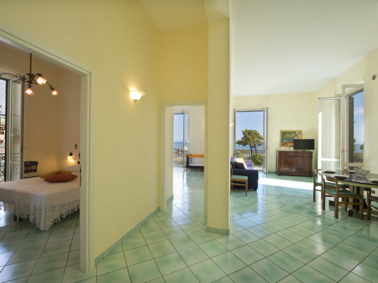 "Antonietta", appartement 3-kamers 80 m2 op de 1e verdieping. Gedeeltelijk gerenoveerd in 2023, comfortabel en gezellig ingericht: woon-/slaapkamer met panoramavenster met 1 2-pers divanbed, eettafel en TV (Flatscreen TV). Uitgang naar het terras. 1 2-pers. kamer met panoramavenster. Uitgang naar het balkon. 1 2-pers. kamer. Kookhoek (2-pits kookplaat, magnetron). Douche/bidet/WC. Verwarming (extra). Balkon, groot terras. Terrasmeubelen. Mooi uitzicht op zee. Ter beschikking: wasmachine. Parkeerplaats nr. 1 (extra) bij het huis. IT065157B498ND3DIG