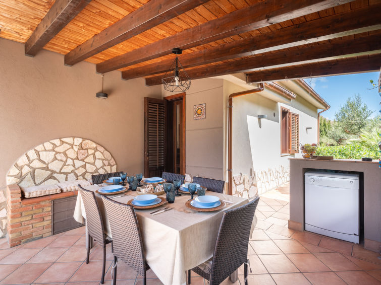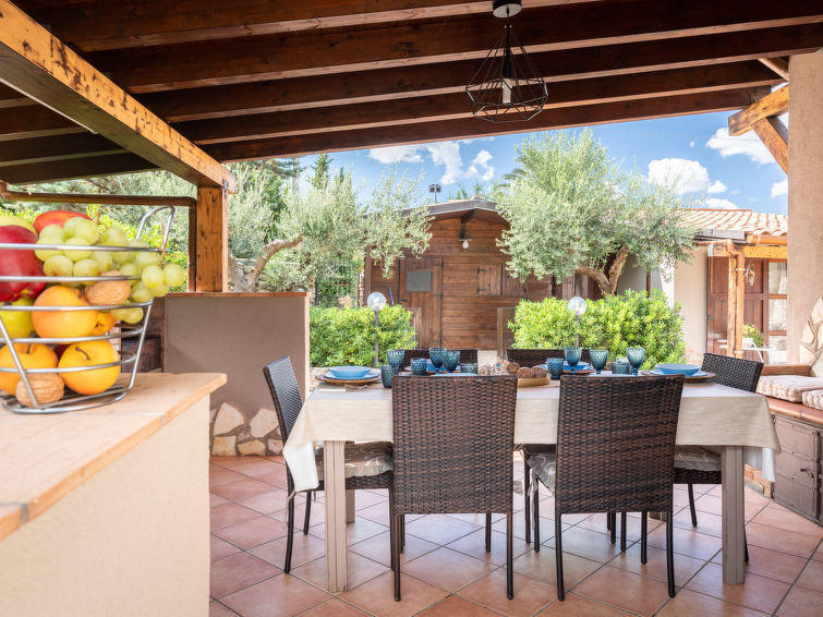 Villa 5-kamers 110 m2. Comfortabel en smaakvol ingericht: woon-/eetkamer met open haard en Sat-TV (Flatscreen TV), air-conditioning en heteluchtverwarming. Uitgang naar de zitplaats in de tuin. 2 2-pers. kamers, elke kamer heeft ventilator. 1 kamer met 1 bed en ventilator. 1 2-pers. kamer met douche/WC en Sat-TV (Flatscreen TV), air-conditioning en heteluchtverwarming. Kookhoek (4-pits kookplaat, oven, afwasmachine, broodrooster, waterkoker, magnetron, elektrische koffiemachine). Douche/bidet/WC. Verwarming, heteluchtverwarming. Verwarming alleen beschikbaar van 01.12. tot 31.03, Verwarming niet in alle ruimtes. Ruime zithoek in de tuin 30 m2, overdekt. Terrasmeubelen, barbecue, ligstoelen. Uitzicht op het zwembad. Ter beschikking: wasmachine, strijkijzer, kinderstoel, kinderbed tot 2 jaar (extra), haardroger. Internet (Internet (WiFi), gratis). Parkeerplaats (3 Auto's). Rookmelders, brandblusser. IT081005C2NS8EGOD9