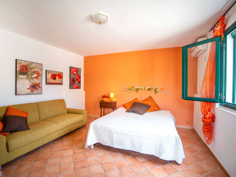 Villa 6-kamers 150 m2. Comfortabel en smaakvol ingericht: woon-/eetkamer met 1 divanbed en Sat-TV (Flatscreen TV). Uitgang naar het terras. 1 2-pers. kamer met douche/bidet/WC, air-conditioning en heteluchtverwarming. 1 kamer met 2 bedden, air-conditioning en heteluchtverwarming. 1 kamer met 2 bedden en ventilator. 1 kamer met 1 bed en ventilator. 1 2-pers. kamer met douche/bidet/WC, air-conditioning en heteluchtverwarming. Uitgang naar het terras. Kleine keuken (4-pits kookplaat, oven, broodrooster, waterkoker, magnetron, elektrische koffiemachine). Uitgang naar het terras. Douche/bidet/WC. Verwarming, heteluchtverwarming. Verwarming alleen beschikbaar van 01.12. tot 31.03, Verwarming niet in alle ruimtes. Groot terras 25 m2, overdekt. Terrasmeubelen, barbecue, ligstoelen. Uitzicht op het zwembad en de tuin. Ter beschikking: wasmachine, strijkijzer, kinderstoel, kinderbed tot 2 jaar (extra), haardroger. Internet (WiFi, gratis). Parkeerplaats (3 Auto's). Eén tweepersoonskamer is buiten het appartement. Rookmelders, brandblusser. Geen interne verbinding tussen de aparte wooneenheden. Als er minder dan het maximale aantal gasten in de accommodatie verblijft, is het bijgebouw niet beschikbaar voor gebruik. IT081005C2Y7L2GEEH