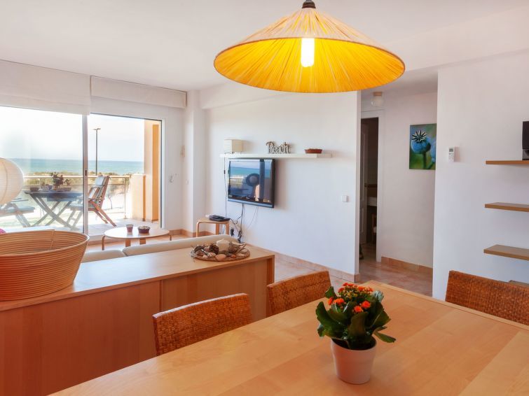 "Port Pals B II", appartement 3-kamers 70 m2. Woon-/eetkamer met eettafel, Digitale TV, Flatscreen TV en air-conditioning. Uitgang naar het terras. 1 kamer met 1 2-pers bed (140 cm, lengte 200 cm), air-conditioning. 1 kamer met 2 bedden (90 cm, lengte 190 cm), air-conditioning. Open keuken (oven, afwasmachine, 4 keramische glas kookplaten, magnetron, elektrische koffiemachine). Badkamer. Geen verwarmingsmogelijkheid. Groot terras. Terrasmeubelen. Zeer mooi uitzicht op zee. Ter beschikking: wasmachine, strijkijzer, kinderstoel, kinderbed, haardroger. Internet (WiFi, gratis). Parkeerplaats nr. garage comunitari 31. TV alleen ES. Smart TV. HUTG-034579