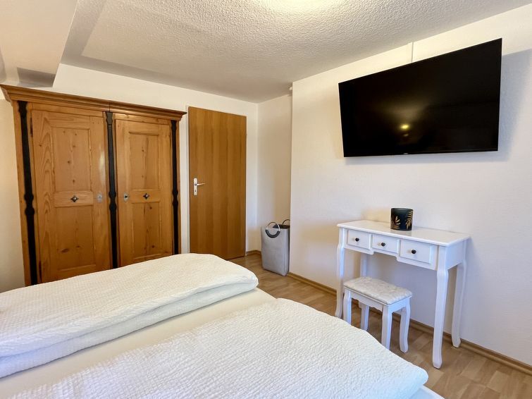 "Gustis Hüsli - Alpensicht & Natur pur", huis 4-kamers 112 m2 op 2 verdiepingen. Ruim, gedeeltelijk gerenoveerd in 2024, gezellig ingericht: hal. Woonkamer met Sat-TV (Flatscreen TV). Uitgang naar de tuin, naar het balkon. 1 kamer met 1 2-pers bed (2 x 90 cm, lengte 200 cm), Sat-TV (Flatscreen TV). Groot woonkeuken (oven, afwasmachine, 4 keramische glas kookplaten, broodrooster, waterkoker, magnetron, elektrische koffiemachine) met eettafel. Bad/WC. Bovenverdieping: 1 kamer met 1 2-pers bed (2 x 90 cm, lengte 200 cm), Sat-TV (Flatscreen TV). 1 kamer met 2 bedden (90 cm, lengte 200 cm). Aparte WC. Verwarming. Groot balkon, ruime zithoek in de tuin, gazon 800 m2. Balkonmeubilair, barbecue, ligstoelen (4). Mooi panoramazicht op. Ter beschikking: wasmachine, klamboe, kinderstoel, haardroger. Internet (WiFi). Parkeerplaats bij het huis. Rookvrij huis. Maximaal 1 huisdier/hond toegestaan. Rookmelders, brandblusser. Als er minder dan het maximale aantal gasten in de accommodatie verblijft, zijn niet alle slaapkamers beschikbaar voor gebruik.