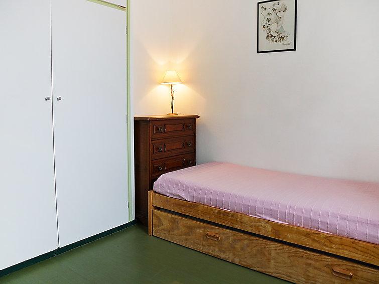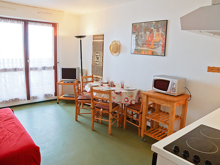 Appartement 2-kamers 30 m2 op de 1e verdieping. Woon-/eetkamer met 1 2-pers divanbed (140 cm), TV. 1 kamer met 1 uitschuifbaar bed (2 pers.). Kookhoek (oven, 4 keramische glas kookplaten, magnetron). Badkamer, aparte WC. Verwarming. Balkon, op het noordwesten gelegen. Terrasmeubelen. Uitzicht op zee. Ter beschikking: Internet (Internet (WiFi), extra). Parkeerplaats nr. 16. Niet rokers woning. Maximaal 1 huisdier/hond toegestaan. Rookmelders.