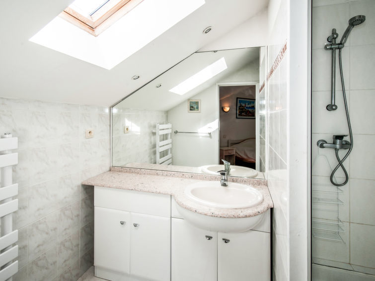 Villa 4-kamers 90 m2 op 2 verdiepingen. Comfortabel ingericht: woon-/eetkamer met open haard en TV. Uitgang naar het terras. 2 kamers, elke kamer heeft 2 bedden (90 cm). Open keuken (oven, afwasmachine, 4 inductiekookplaten, magnetron). Douche, aparte WC, dubbele wastafels. Elektrische verwarming. Bovenverdieping: 1 kamer met 1 2-pers bed (160 cm, lengte 200 cm), douche/WC en TV. Uitgang naar het balkon. Terras 60 m2, overdekt, op het westen gelegen terras 48 m2, op het westen gelegen. Terrasmeubelen. Uitzicht op het zwembad en de tuin. Ter beschikking: wasmachine, droger. Internet (Internet (WiFi), gratis). Parkeerplaats (omheind, 2 Auto's). Niet rokers woning. Rookmelders.