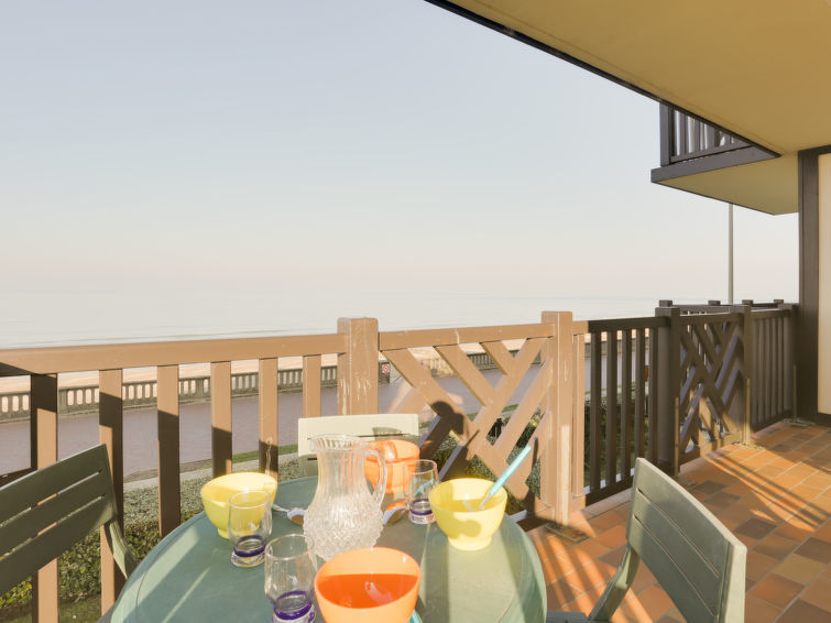 Residentie "Cabourg Beach", van 4 verdiepingen. In de plaats, 600 m van het centrum van Cabourg, 300 m van het centrum van port de plaisance, 50 m van zee, van het strand. In het complex: lift. Openbare parkeerplaatsen in de straat. Winkel, restaurant 600 m, bushalte "Hôtel de Ville" 1.4 km, zandstrand 50 m, thermaalbad "Thalazur" 2.5 km. Golfterrein (9 holes) 2 km. Opgelet: toegang tot de residentie via enkele traptreden.
