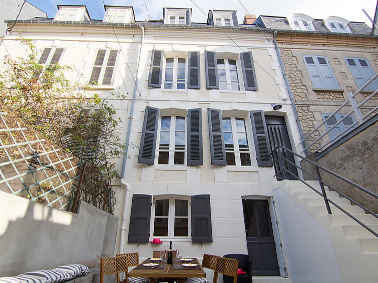 Trouville sur Mer: Comfortabel rijtjeshuis "Guillaume le Conquérant", van 3 verdiepingen. 400 m van het centrum, perfecte locatie: in het centrum en toch rustig gelegen, 900 m van zee, 900 m van het strand. Winkel, levensmiddelenwinkel 250 m, supermarkt 2.3 km, bushalte "Eglise notre-dame" 180 m, treinstation "Deauville-Trouville" 500 m, zandstrand, overdekt zwembad 900 m, thermaalbad "Trouville sur Mer" 900 m. Golfterrein (18 holes) 9.3 km, zeilschool 1.7 km, tennis 950 m. Attracties in de buurt: Hippodrome Deauville - La Touques 1.9 km, Honfleur 15 km, Mémorial de Caen 55 km, Plage du débarquement d'Arromanches 87 km. De sleuteloverdracht vindt plaats bij het agentschap Interhome in Deauville.