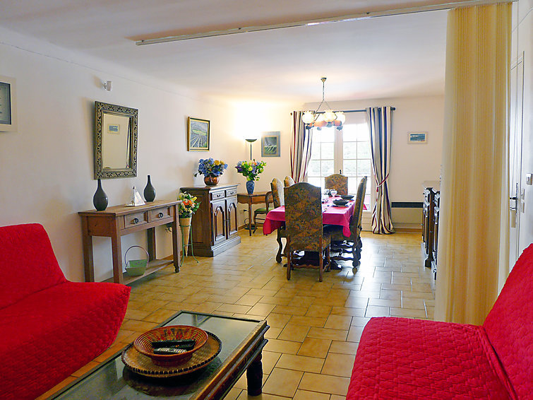 Appartement 3-kamers 90 m2, souterrain. Comfortabel ingericht: woon-/eetkamer met 1 2-pers divanbed (1 x 140 cm, lengte 190 cm), TV (Flatscreen TV), air-conditioning. Uitgang naar het terras, naar het zwembad. 1 kamer met 2 bedden (90 cm, lengte 190 cm), air-conditioning. 1 kamer met 1 2-pers bed (1 x 160 cm, lengte 200 cm), air-conditioning. Open keuken (5-pits kookplaat, oven, afwasmachine, waterkoker, magnetron, diepvriezer, elektrische koffiemachine). 2 bad/WC's. Elektrische verwarming. Groot terras 20 m2. Elektrische barbecue, ligstoelen. Mooi uitzicht op zee en het zwembad. Ter beschikking: wasmachine, strijkijzer, kinderstoel, kinderbed, haardroger. Internet (Internet (WiFi), gratis). Parkeerplaats. Rookmelders. 83107000208L3