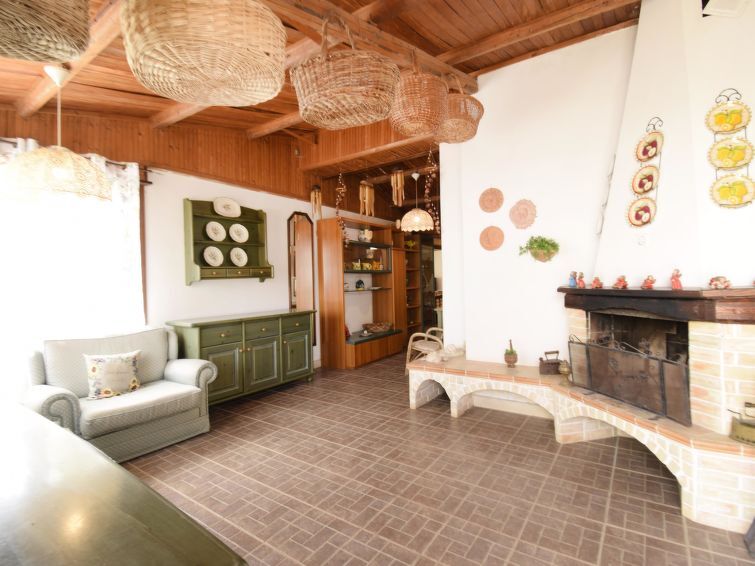 Huis 4-kamers 130 m2. Eenvoudig en doelmatig ingericht: groot woon-/eetkamer met 1 slaapplaats en TV (Flatscreen TV), air-conditioning en heteluchtverwarming. Uitgang naar het terras. Woonkamer met open haard. Uitgang naar het terras. Kleine doorgangskamer met 1 2-pers bed en ventilator. 1 kleine 2-pers. kamer met air-conditioning en heteluchtverwarming. 1 kleine kamer met 1 bed en ventilator. Kookhoek (5-pits kookplaat, oven, broodrooster, waterkoker, magnetron) met eettafel. Uitgang naar het terras. Douche/bidet/WC. Verwarming, houtverwarming (extra), air-conditioning, heteluchtverwarming (extra), boiler (80 liter). Verwarming alleen beschikbaar van 01.12. tot 31.03, Verwarming niet in alle ruimtes. Groot terras 100 m2 gedeeltelijk overdekt, 2 terrassen 25 m2. Terrasmeubelen, barbecue. Beperkt uitzicht op zee. Ter beschikking: wasmachine, strijkijzer, klamboe, kinderstoel, kinderbed tot 2 jaar, haardroger. Internet (WiFi, gratis). Parkeerplaats (2 Auto's). Maximaal 1 huisdier/hond toegestaan. IT088006C26CJEZMHB