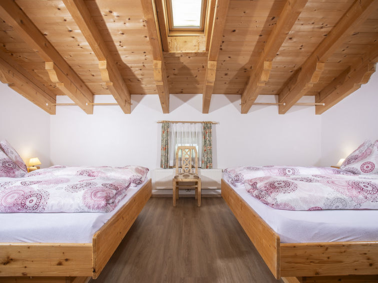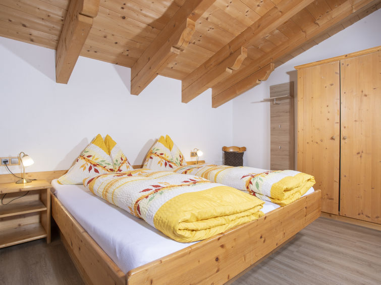 Appartement 7-kamers 180 m2, op de bovenste verdieping. Ruim, comfortabel en smaakvol ingericht: hal. Groot woon-/eetkamer met eethoek en Sat-TV (Flatscreen TV). Uitgang naar het balkon. 5 2-pers. kamers. 1 kamer met 2 2-pers bedden. Open keuken (oven, afwasmachine, 4 keramische glas kookplaten, magnetron). Bad/douche, douche, 2 aparte WC's. Houten vloeren. Comfortabele inrichting in landelijke stijl. Balkon. Balkonmeubilair. Mooi panoramazicht op de bergen en het landschap. Ter beschikking: Internet (WiFi, gratis). Rookmelders.
