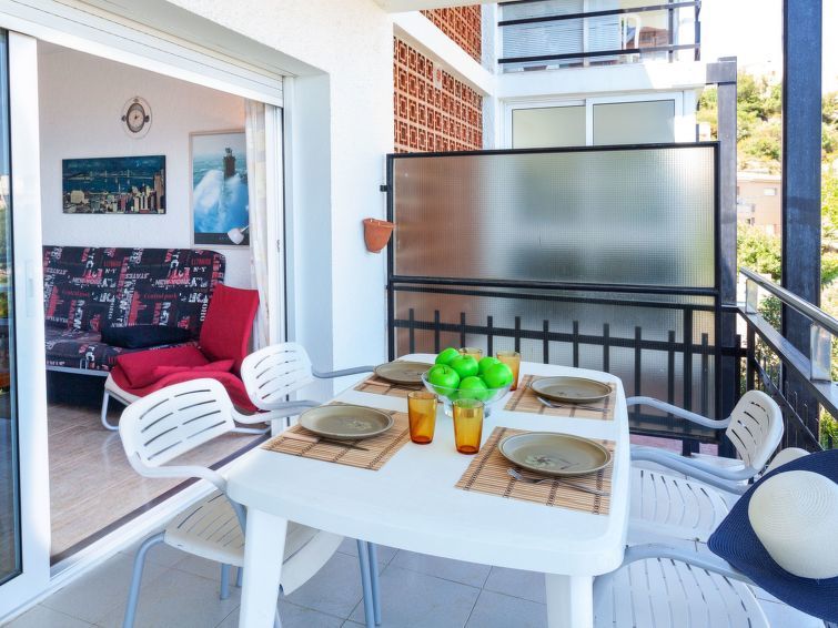 "Les Oranetes", appartement 2-kamers 45 m2, op de tussenverdieping. Doelmatig ingericht: woon-/eetkamer 16 m2 met 1 2-pers divanbed (1 x 135 cm, lengte 190 cm), Digitale TV, Flatscreen TV, air-conditioning en heteluchtverwarming. Uitgang naar het terras. 1 kamer met 1 2-pers bed (1 x 135 cm), air-conditioning en heteluchtverwarming. Keuken (afwasmachine, X keramische glas kookplaten, magnetron, diepvriezer, grill, elektrische koffiemachine). Douche/bidet/WC. Air-conditioning. Terras 12 m2. Terrasmeubelen. Mooi uitzicht op zee, de bergen en het landschap. Ter beschikking: wasmachine. TV alleen ES, FR. HUTG003315