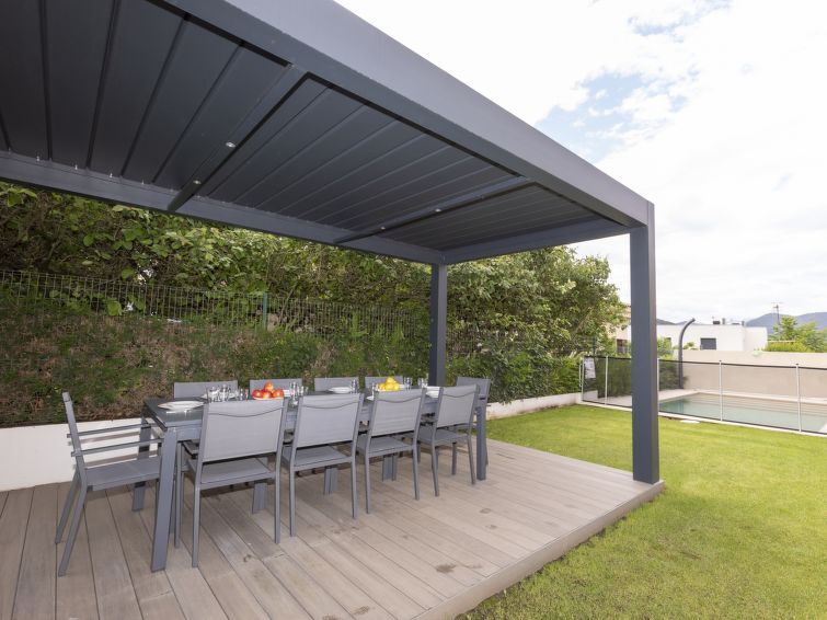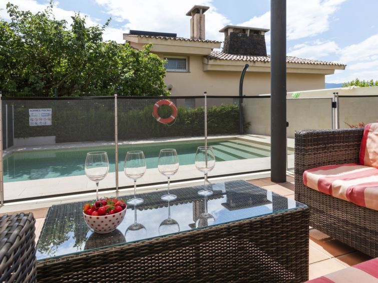 Moderne, mooi eengezinswoning. In de plaats, 1.2 km van het centrum, perfecte locatie: in het centrum en toch rustig gelegen. Voor alleengebruik: tuin met gazon, openluchtzwembad (seizoensgebonden beschikbaarheid: 01.Jan. - 31.Dec. openingstijden zwembad: 06:00-22:00). Patio, tuinmeubelen, barbecue. In het huis: centrale verwarming. Overdekte parkeerplaats. Restaurant 800 m, bakkerij 200 m, bushalte "Estació d'Autobusos" 700 m. De eigenaar accepteert geen jeugdgroepen. De omgeving is gevoelig voor geluidsoverlast. Gelieve geen lawaai te maken en de rust te bewaren.